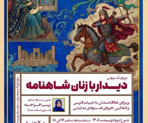 در جریان برگزاری دوره آموزشی «دیدار با زنان شاهنامه»، همچنین به کهنالگوهای مؤثر در شکلگیری شخصیتهای زن شاهنامه اشاره میشود، ابیاتی از شاهنامه خوانش و تحلیل میشود و زمینه آشنایی عمیقتر مخاطبان با زبان و فضای شاهنامه فراهم خواهد شد.